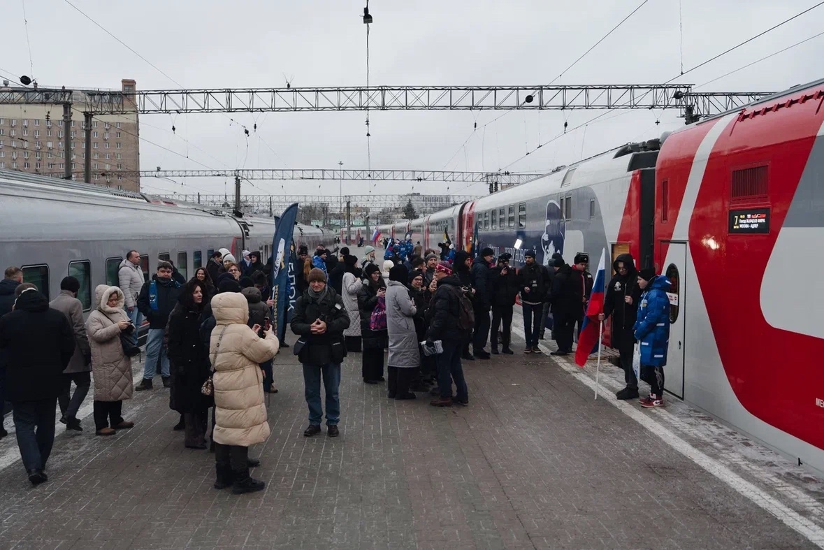 На торжественной церемонии присутствовали руководство «РЖД», партийцы и почетные гости. В течение всего 2026 года 18 таких составов будут курсировать по многим уголкам нашей страны.